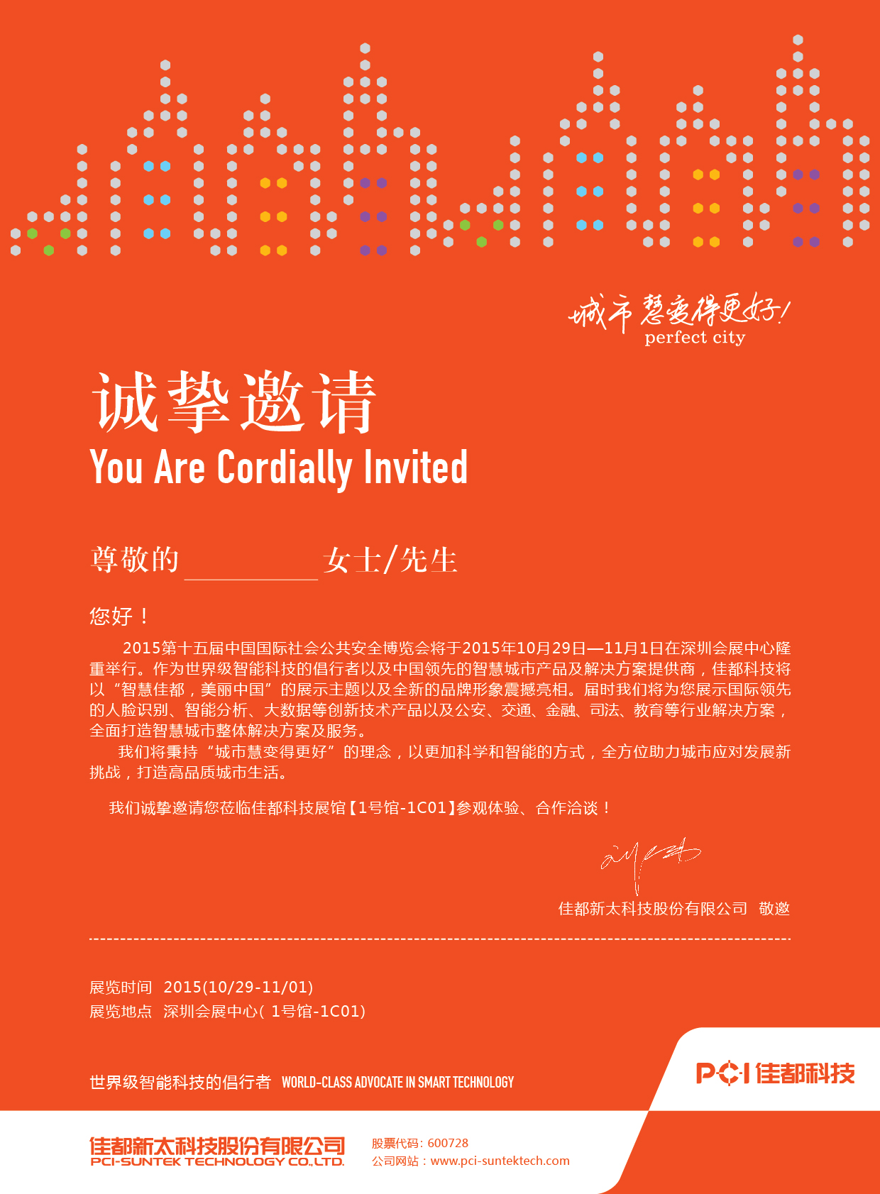 2015第十五届中国国际社会公共安全博览会将于2015年10月29日—11月1日在深圳会展中心隆重举行。作为世界级智能科技的倡行者以及智慧城市产品及解决方案提供商,佳都科技将以“智慧佳都,美丽中国”的展示主题以及全新的品牌形象震撼亮相。届时我们将为您展示先进的人脸识别、智能分析、大数据等创新技术产品以及公安、交通、金融、司法、教育等行业解决方案,全面打造智慧城市整体解决方案及服务。
