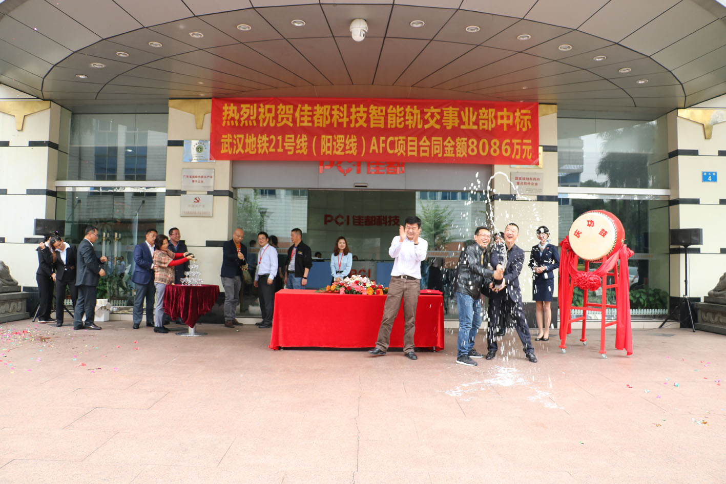 近日,佳都科技传来喜讯,公司轨道交通事业部中标武汉地铁21号线(阳逻线)AFC项目,合同金额8086万元。20日下午公司在总部大楼隆重举行了击鼓庆功仪式,共同庆祝和分享这一收获的喜悦。
