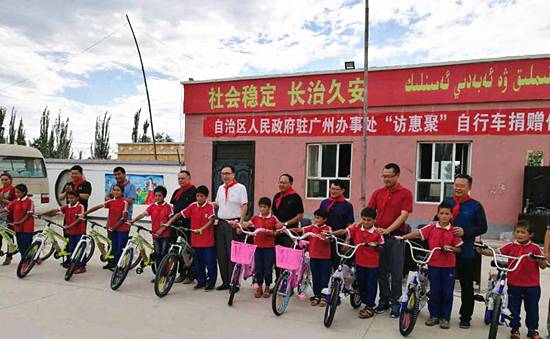据出席本次捐赠活动的自治区人民政府办公厅驻广州办事处主任贺建军介绍,由于路途遥远,当地的许多孩子们都渴望有辆自行车上下学,这些自行车就是广州办事处给他们带来的“连心”车,同时也传达了佳都科技对新疆农村学子的殷切关怀,希望孩子们在学习成长的道路上骑得更远,飞得更高,坚定对未来美好生活的信心与决心。现场有些孩子领到自行车后就迫不及待地试骑起来,在小小的操场上响起了孩子们阵阵欢快的笑声。