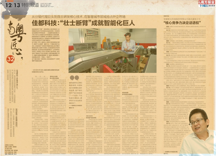南都:目前佳都哪些自主研发的产品已经能够跟国外产品同台PK了?你们的优势在于哪些方面?